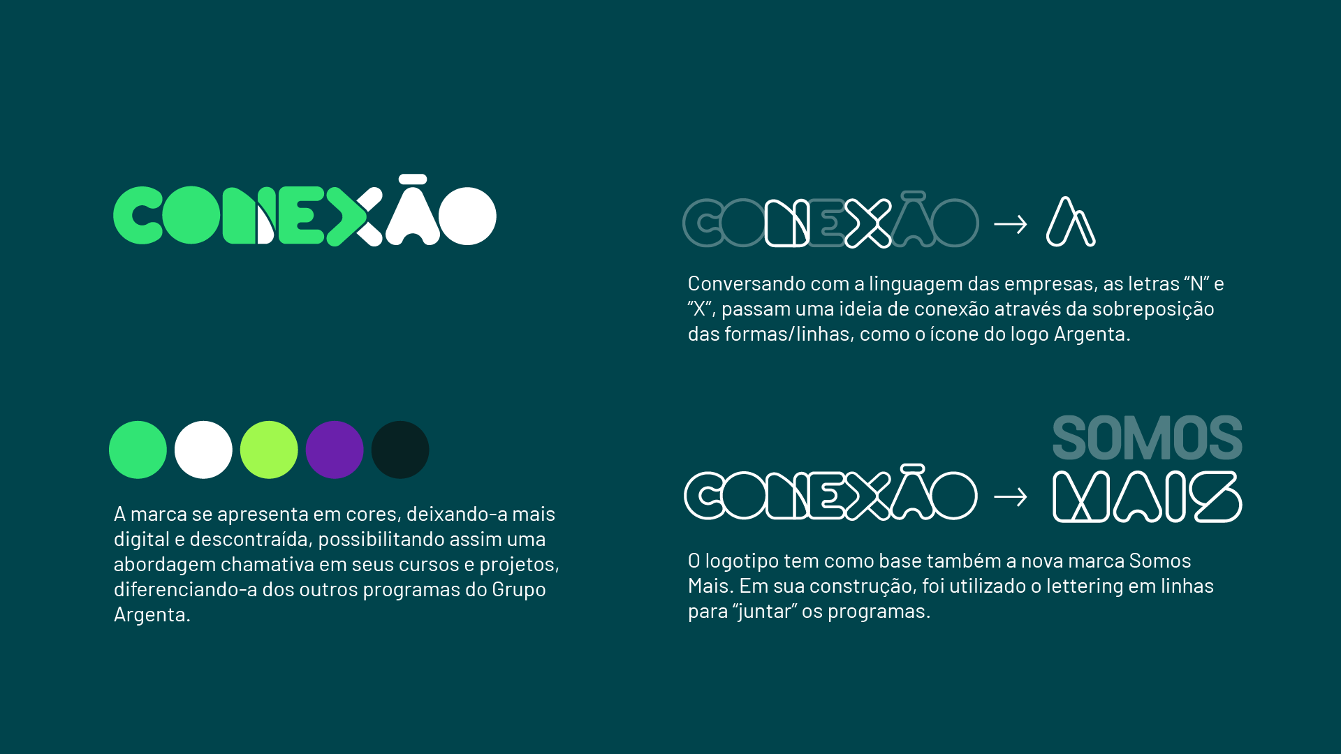 A identidade visual é composta por 3 programas centrais, ACAD, SOMOS MAIS e CONEXÃO.